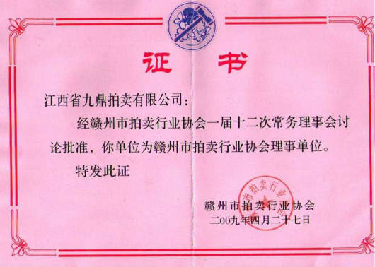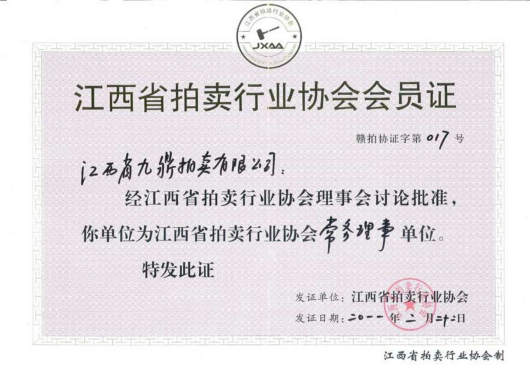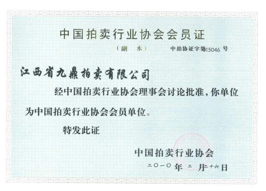 江西省九鼎拍賣有限公司是嚴(yán)格按照《中華人民共和國公司法》、《中華人民共和國拍賣法》等有關(guān)法律法規(guī)而成立的拍賣機(jī)構(gòu),是國家A級(jí)資質(zhì)拍賣企業(yè)、中國拍賣行業(yè)協(xié)會(huì)會(huì)員單位、江西省公物拍賣指定單位、江西省拍賣行業(yè)協(xié)會(huì)常務(wù)理事單位,是目前江西省規(guī)模較大、起點(diǎn)較高的專業(yè)拍賣單位。公司遵照《中華人民共和國合同法》、《中華人民共和國拍賣法》等法律法規(guī)、政策,依法接受公民、法人或其他組織的委托,并提供財(cái)產(chǎn)鑒定評(píng)估、過戶代理等業(yè)務(wù)。